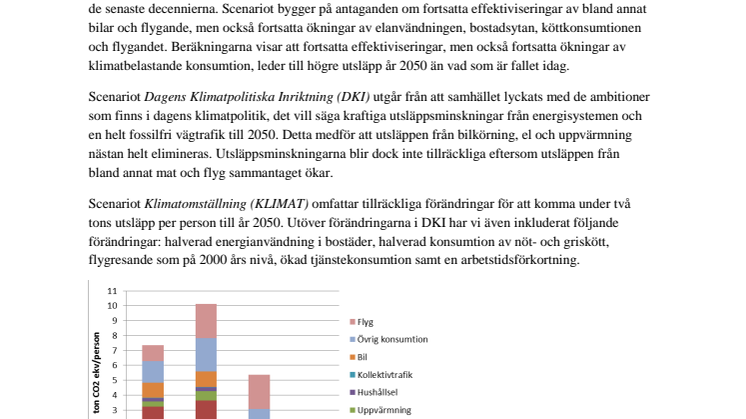 En nydanande rapport från forskningscentrumet Mistra Urban Futures beskriver tre olika scenarier för 2050 utifrån det så kallade konsumtionsperspektivet. Det innebär att importerade varor och internationella transporter räknas in. Rapportens huvudförfattare är Jörgen Larsson från Chalmers och Lisa Bolin från SP Sveriges Tekniska forskningsinstitut.