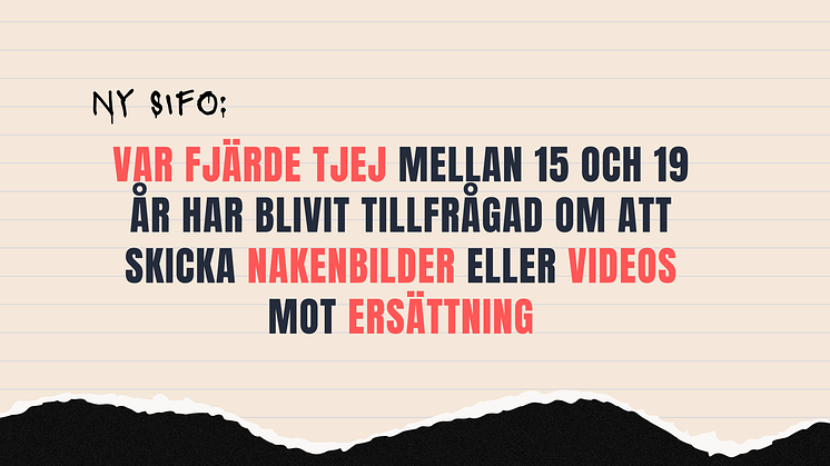Sifo-undersökningen genomfördes i september 2022 och besvarades av riksrepresentativt urval av 1001 personer mellan 15 till 19 år. Var fjärde tjej, 24 procent, svarar att de har fått frågor om att ta emot pengar eller gåvor i utbyte mot att skicka avklädda eller sexiga bilder eller videos. Motsvarande siffra bland killar är 4 procent. Var tionde tjej har blivit tillfrågad om att träffa någon för att ha sex eller genomföra sexuella handlingar mot ersättning.