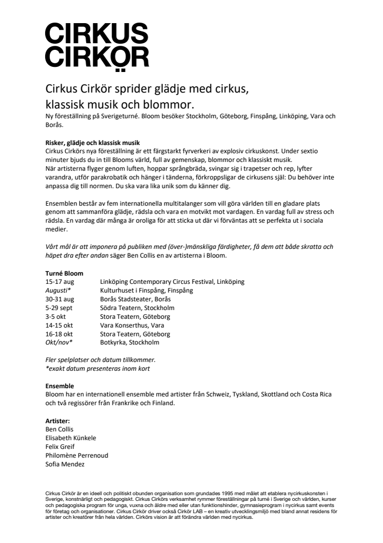 Cirkus Cirkör sprider glädje med cirkus, klassisk musik och blommor.