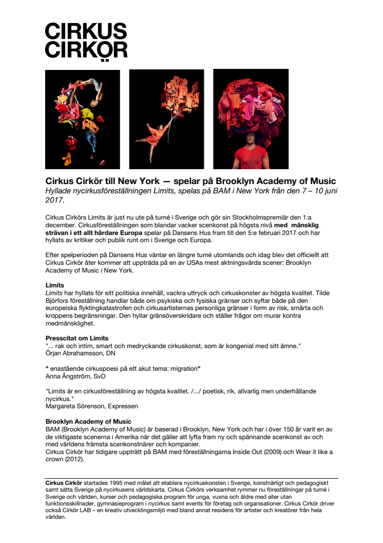 Cirkus Cirkör till New York — spelar på Brooklyn Academy of Music