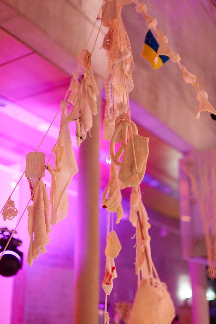 Bild från Cirkus Cirkörs site specificföreställning av Knitting Peace vid de nordiska ambassaderna i Berlin 2023, i samband med Sveriges ordförandeskap i EU.