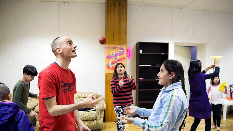 Projektet Cirkushoppet är ett samarbete mellan Cirkus Cirkör och Clowner utan Gränser. Cirkushoppet ska ge människor på flykt ett varmare välkomnande till Sverige och genom cirkusträning, skratt och lek skapa framtidstro och stunder av lättnad på asylboenden runt om i hela landet. Inom ramen för projektet vill vi även ge boendepersonal inspirationsmaterial och verktyg för fortsatt arbete, öka allmänhetens förståelse för flyktingskapets ofrivillighet samt skapa modeller som andra kulturformer kan använda sig av i arbete med målgruppen.