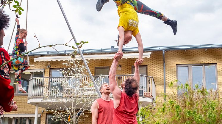 - När det i dagsläget inte går att uppträda som vanligt så passar vi på att ändå sprida glädje via cirkuskonsten. Det blir en glad akrobatikshow utomhus på säkert avstånd till åskådarna, vi tar cirkusen nära dem, fast inte för nära,