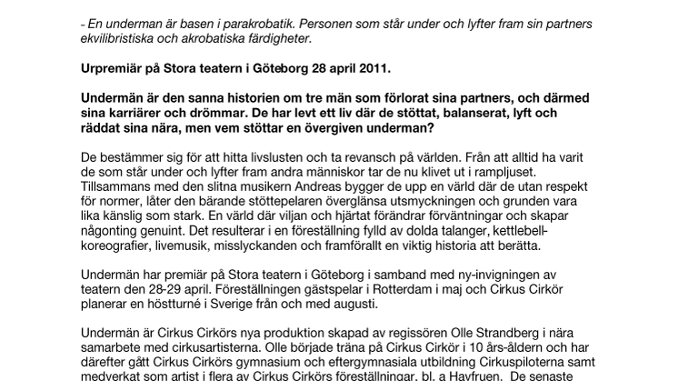 Cirkus Cirkör presenterar en ny produktion: UNDERMÄN
