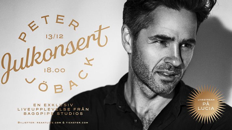 Så var med och fira Lucia med en helt exklusiv, intim julkonsert med Peter Jöback, livestreamad från anrika Baggpipe studio i Skärmarbrink . Det blir julmusik av högsta klass med Peter, musiker och stråkkvartett i en stämningsfull miljö.