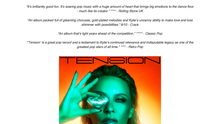 "‘Tension’ is a great pop record and a testament to Kylie’s continued relevance and indisputable legacy as one of the greatest pop stars of all time." **** - Retro Pop