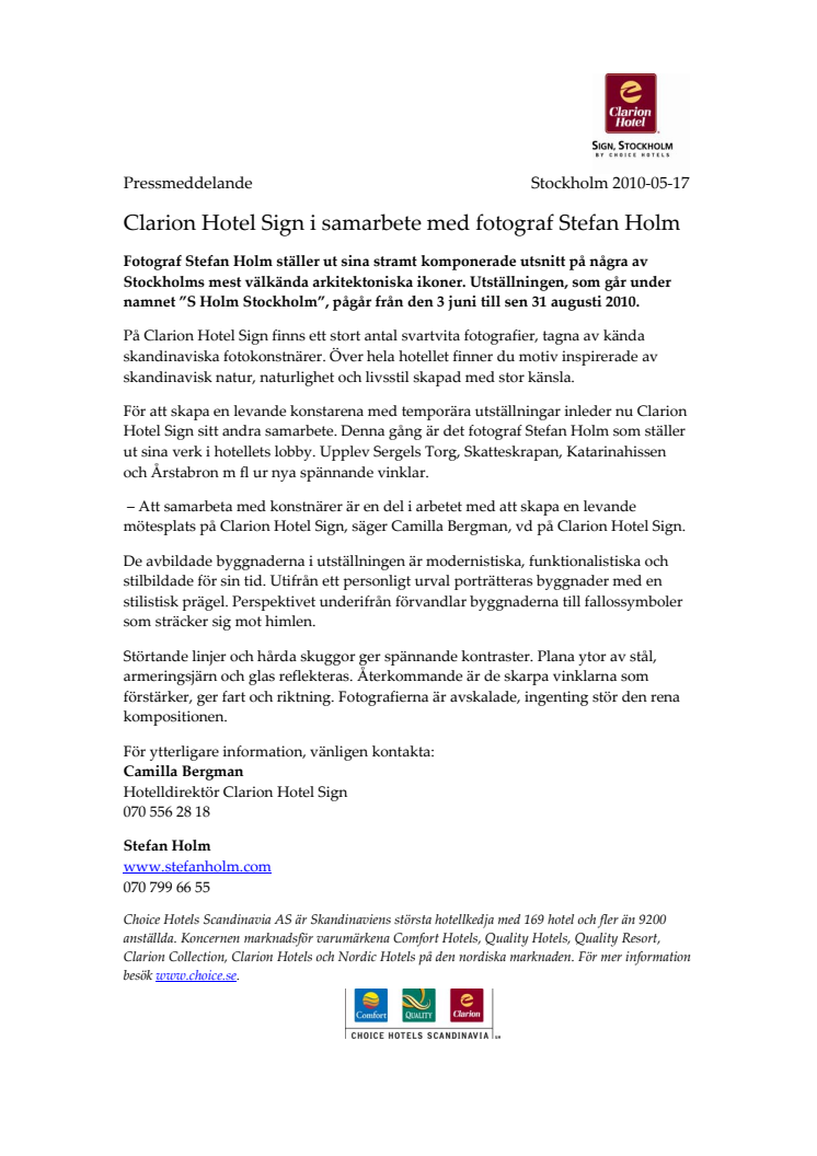 Clarion Hotel Sign i samarbete med fotograf Stefan Holm
