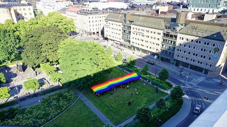 Alla som vill är välkomna att bege sig till Clarion Hotel Sign idag, onsdag den 15 juni, kl 17.00 för att delta. Flaggan kommer att skapas i parken på Norra Bantorget. Efter aktiviteten bjuder man in till en after work på Clarion Hotel Sign tillsammans med Stockholm Pride. Mer information finns i Facebook-eventet här.