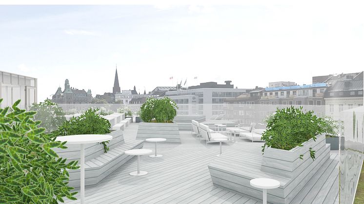 I det 25 våningar höga hotellet finns redan en Sky Bar med utsikt över Öresund och Malmö. Nu adderas en utomhusterrass med urban garden-känsla och utsikt mot Kanalen och City.