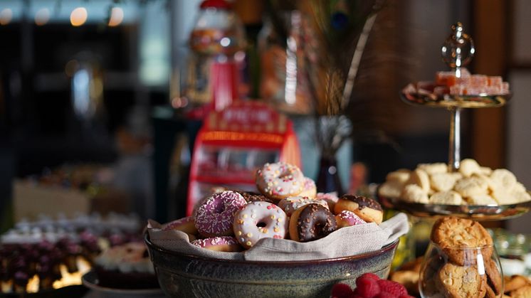 Den storslagna dessertbuffén är här för att stanna men även den får ett ordentligt lyft och blir mer färgstark, mäktigare och härligare. Här har Clarion Hotel Posts eget konditori verkligen fått ta plats och Erik Möller, som tidigare tagit silvermedalj med Svenska kocklandslaget i Culinary World Cup i Luxemburg, har fått fria händer att skapa ett dessertbord av sällan skådat slag. Vid sin sida har han sina kreativa och välmeriterade kollegor i konditoriet.