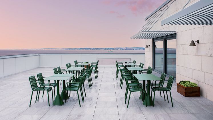På en luftig yta med panoramautsikt och bar kan man slå sig ner bland stora soffgrupper, delikata designmöbler och barbord. En plats för AW, ett möte, för att umgås med vänner eller för att arbeta. En vibrerande mötesplats där alla är välkomna.