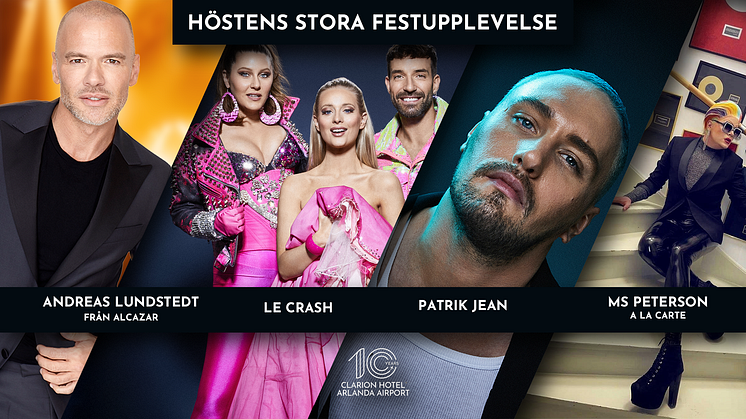 I 10 år har Clarion Hotel Arlanda Airport varit en central plats för internationella möten, återföreningar, pirriga resenärer, vänner & familjer, där deras läge - ovanpå Sky City - målade om Arlandas skyline från grunden. Nu bjuder hotellet in till en unik festupplevelse i resandets tecken - där du kan ta del av hela världen under ett och samma tak samtidigt som du njuter av musik av några av Sver