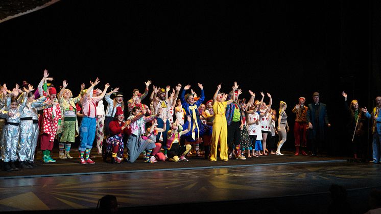 Föreställningen på Dramatens stora scen bjöd på en mix av clowner, cirkuskonster, musik, dans och magi. Efter föreställningen fick barnen möjlighet att träffa artisterna, själva prova på cirkus och delta i aktiviteter som muralmålning, pyssel och ansiktsmålning.