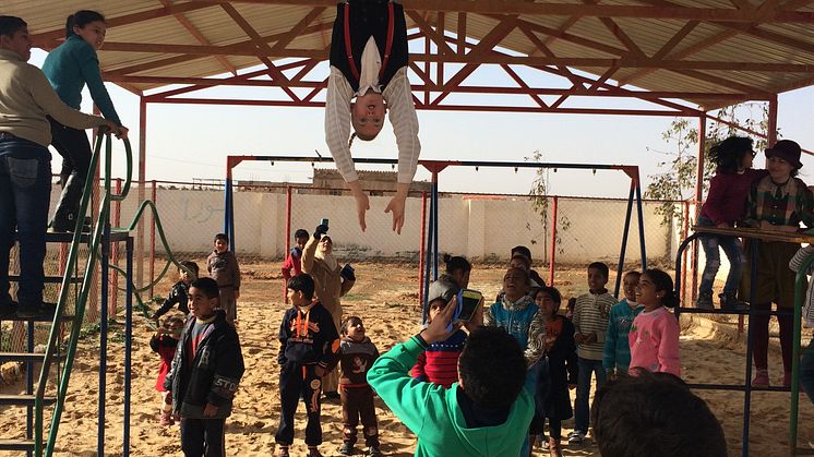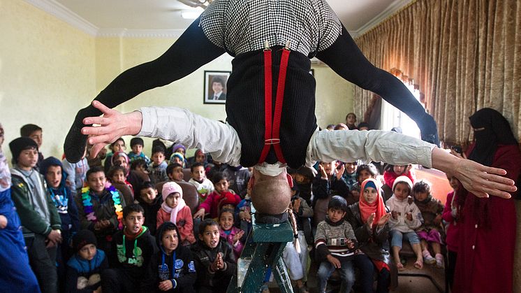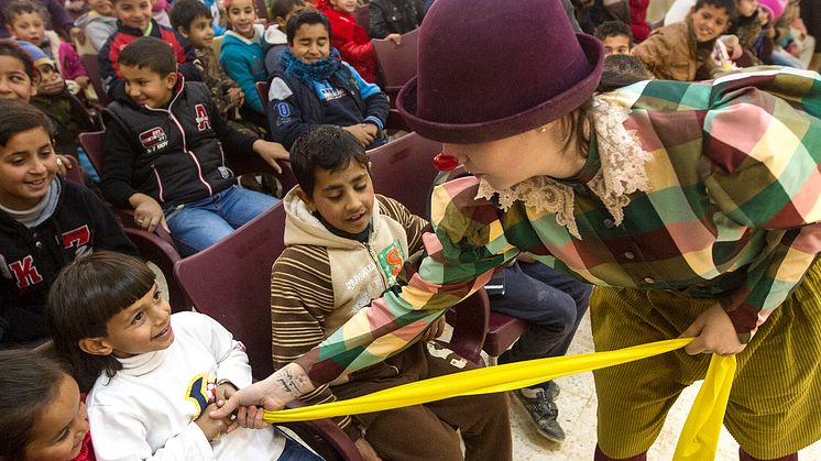 – Jag har släktingar i Syrien och har länge undrat vad jag kan göra för att hjälpa till. Eftersom jag kände till Clowner utan Gränser och det viktiga arbete de gör, så hörde jag av mig till dem och undrade hur jag kan bidra, säger Nour El Refai och fortsätter: På plats i Jordanien var det så härligt att se dessa hårt drabbade barn öppna upp och helt gå in i känslan av lek och frihet. Jag blev så lycklig över att vara där och få spela för barnen, det kändes så otroligt meningsfullt!