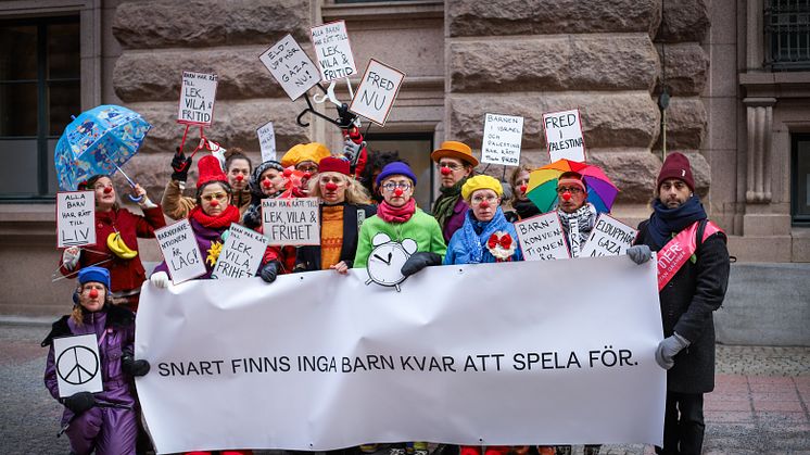 Clowner utan Gränser, en organisation som ger psykosocialt stöd till barn i utsatthet, arrangerar idag en fredsmanifestation utanför Sveriges riksdag. Med deltagande av clowner, artister och kulturaktörer, syftar den till att uppmärksamma behovet av en omedelbar vapenvila i Gaza. Sedan Hamas fruktansvärda attack den 7 oktober förra året har över 25 000 människor dödats i Gaza, varav av 9600 barn, och nästan hela befolkningen, 1,9 miljoner människor, har tvingats på flykt. Manifestationen sker i samband med att Tobias Billström ska utfrågas om Sveriges ansvar för att få stopp på kriget i Gaza.