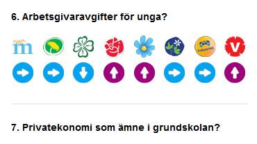 Nedan (bild) ser du hur de olika riksdagspartierna svarat på våra kortfrågor.