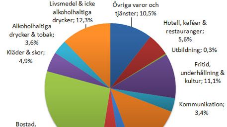 - År 2011 spenderade vi 26,8 procent av vår totala konsumtion på bostad, gas och uppvärmning.