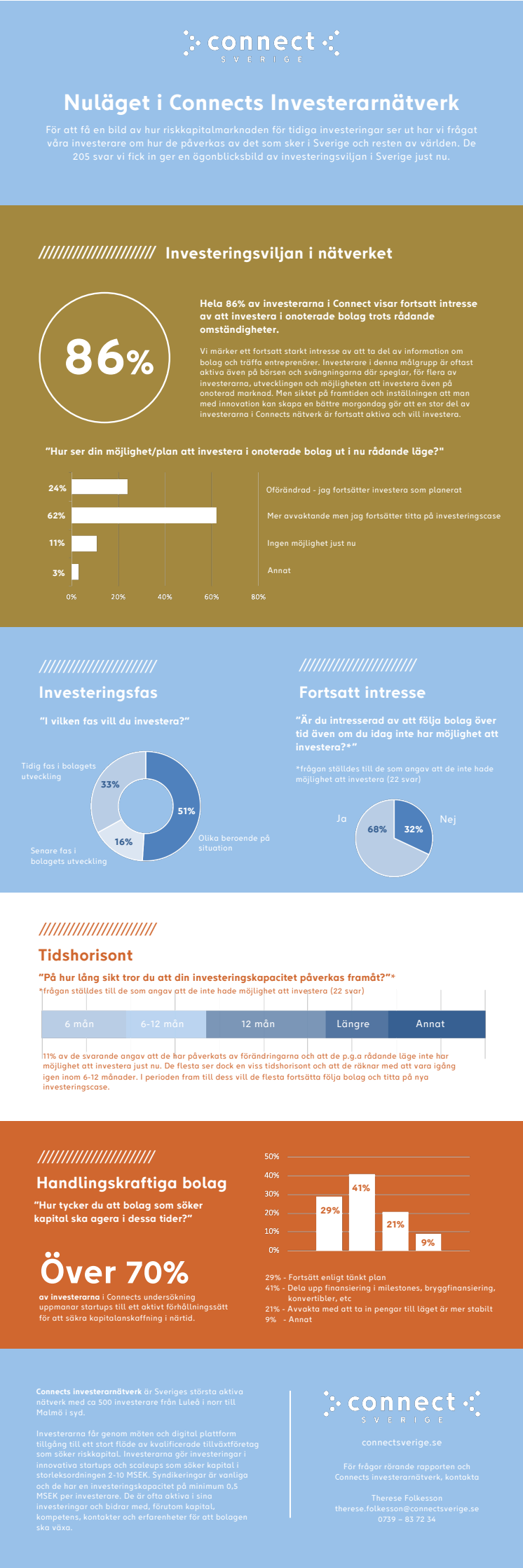 Hela 205 investerare från hela Connects nätverk har deltagit i vår undersökning för att ta tempen på investerarklimatet just nu och bilda oss en uppfattning om nuläget.