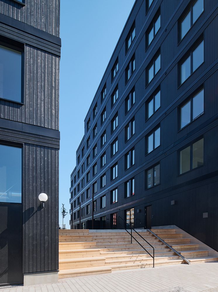 En central del av projektet har varit den avancerade fasadlösningen med många plåtdetaljer och de stora terrasserna, där tätskiktet krävde särskilt noggrann planering. Samtidigt har projektet genomförts med fokus på hållbarhet – hela byggnaden är Svanenmärkt, vilket ställde höga krav på materialval och byggprocess.