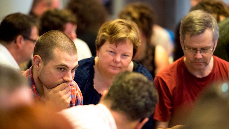 Finansminister Magdalena Andersson och finansmarknadsminister Per Bolund finns på plats i Stöcke Missionshus