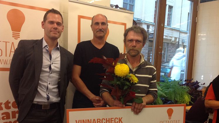 Det var tre mycket rörda och framförallt överraskade män som tog emot prischecken på 100 000 kronor vid torsdagens nationella final av den kooperativa företagstävlingen Jakten på ostartade företag.