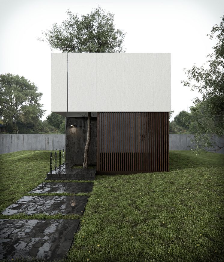 Dekton Radium (oscuro) Dekton Blanc Concrete (Claro)_facade