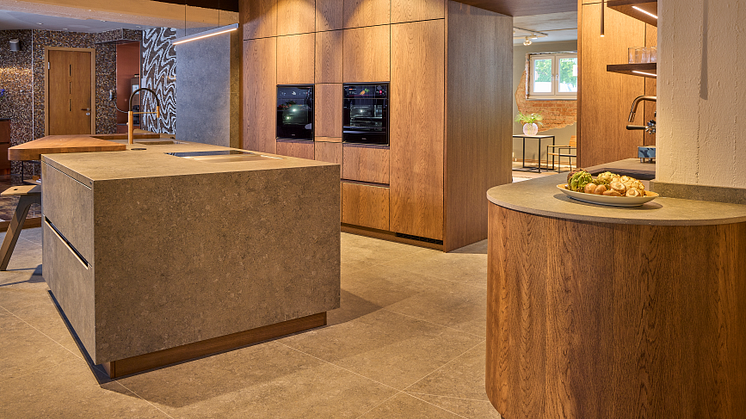 Material och ytbehandlingar: Dekton® Kraftizen Umber, Dekton® Pietra Kode Ceppo och Avorio, förstenat trä, kaktusläder och yaréfiber