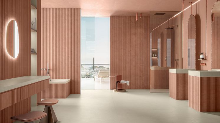 Installationen visades under Milanos Designvecka och utmanar konventionella tolkningar av badrummet från ett enkelt funktionellt utrymme till en skulptural plats för tillflykt och kontemplation - möjliggjort med Dekton®