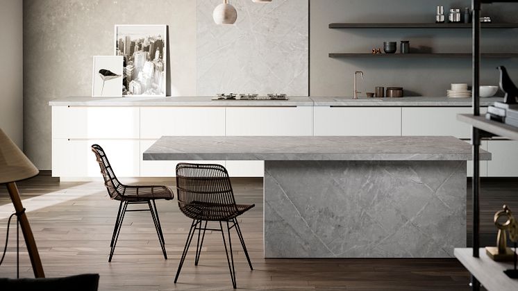 Båda de nya Dekton-färgerna är inspirerade av det eleganta, mångsidiga utseendet på den populära Gris Pulpis-marmorn där skillnaden mellan de två ligger i bastonen. Medan Vera erbjuder en grå, cementliknande färg är Kiras yta full av jordtoner.