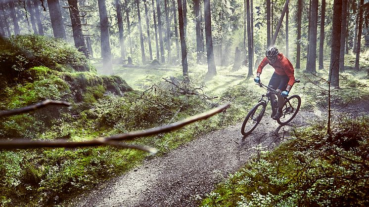 Solens strålar som skiner mellan träden, obanad terräng och tystnaden runt omkring. Hur kan man inte älska skogscykling?