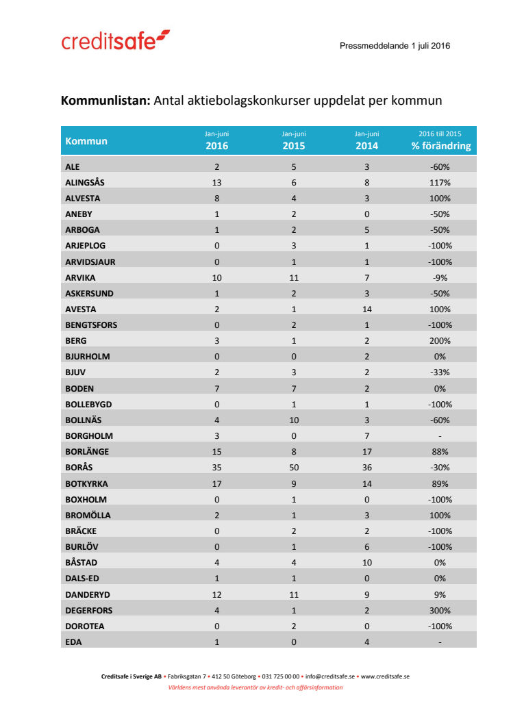 Creditsafes kommunstatistik - aktiebolagskonkurser uppdelat per kommun