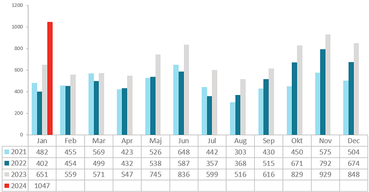 Konkurser per månad och år - 2024