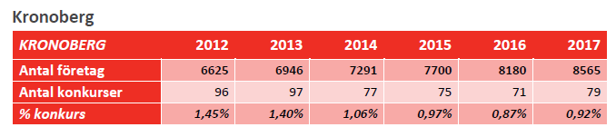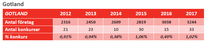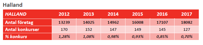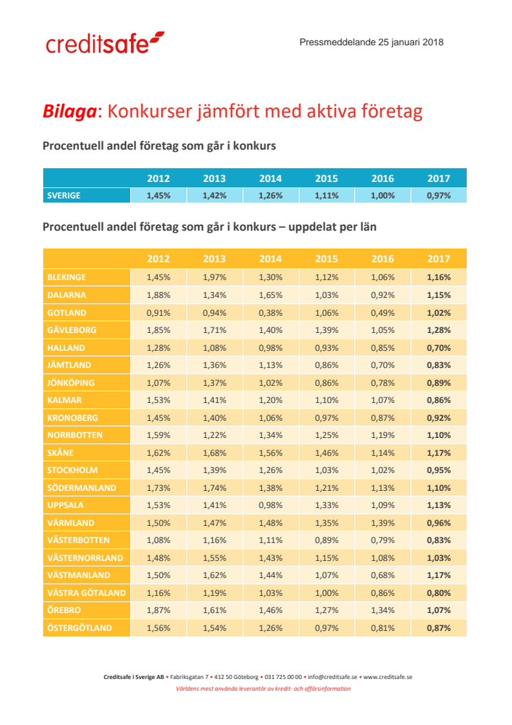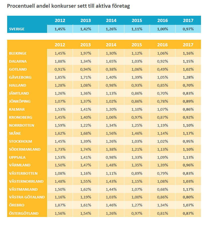 - Länsstatistik över antal företag, antal konkurser och % andel konkurs