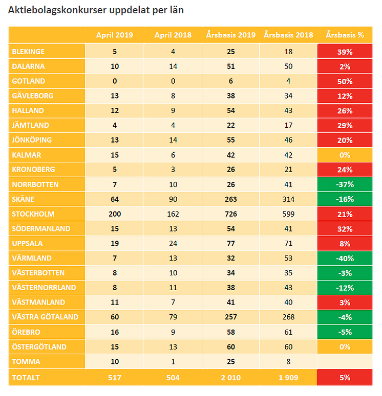 Konkursstatistik per den 2 maj 2019, se bilaga som omfattar: