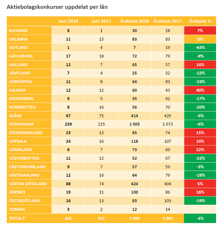 Konkursstatistik per den 2 juli 2018, se bilaga som omfattar: