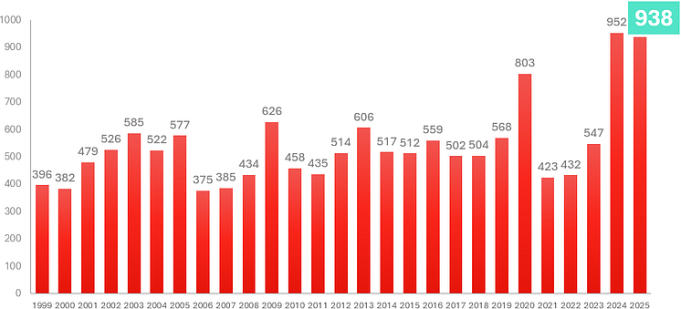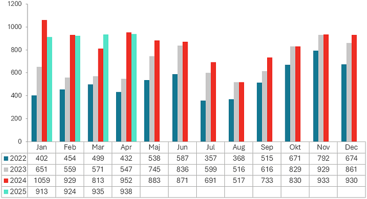 Under april gick 938 svenska aktiebolag i konkurs, att jämföra med 952 under samma månad förra året och 547 året innan dess. Det innebär en marginell minskning med 1 procent jämfört med april 2024, men samtidigt en ökning med hela 71 procent jämfört med april 2023 – en tydlig indikation på att konkursläget fortsatt är ansträngt.