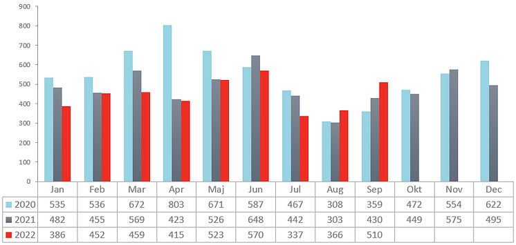 Totalt registrerade 4 404 nystartade aktiebolag i september, en minskning med 14 procent jämfört med samma månad förra året. Just nu finns ca 730 000 verksamma aktiebolag i Sverige.