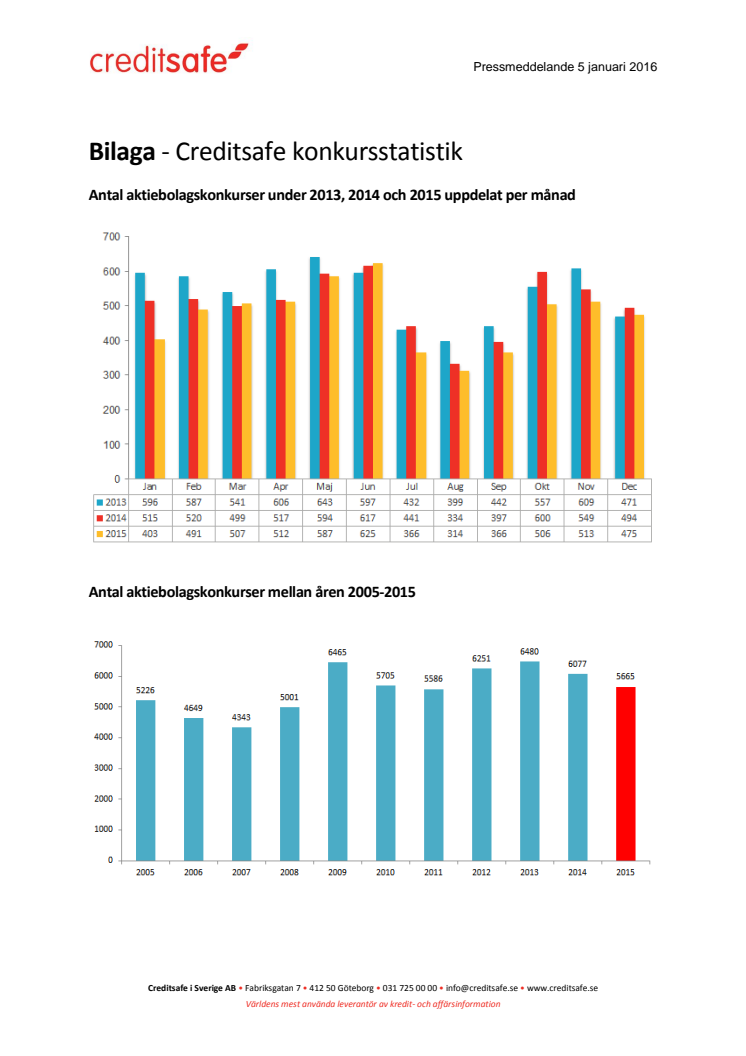 För konkursstatistik per den 5 januari 2016, se bilaga som omfattar: