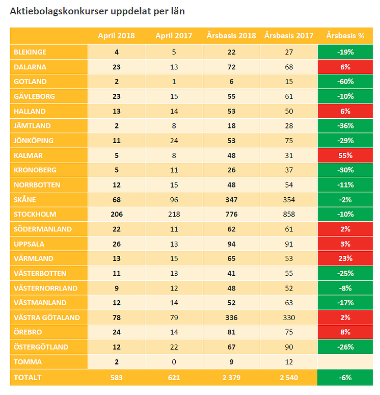 Konkursstatistik per den 1 juni 2018, se bilaga som omfattar: