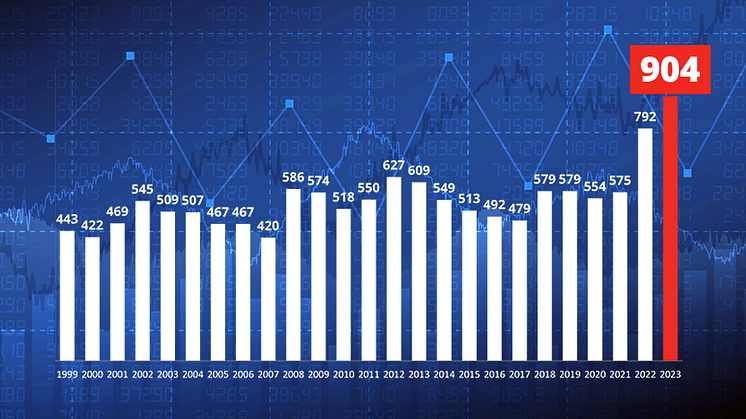 • Konkurserna slår nytt rekord! Över 8 200 konkurser under 2023 - ökning med 31 procent