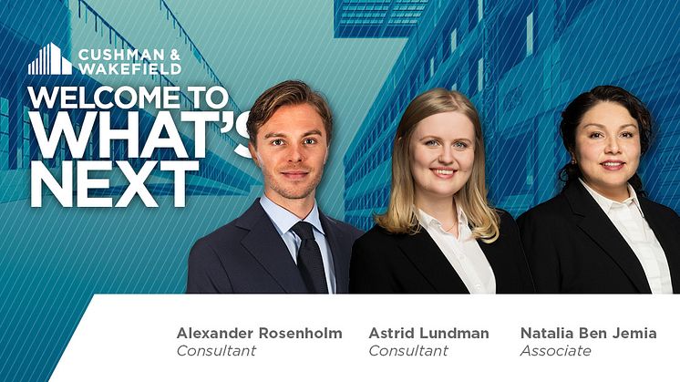 Stockholm, 30 mars 2022 – Cushman & Wakefield förstärker bolaget genom att rekrytera tre personer till affärsområde Tenant Representation. Alexander Rosenholm, Astrid Lundman och Natalia Ben Jemia har anslutit till teamet.