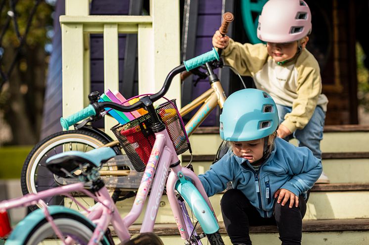Det är ingen lek att bygga bra och säkra barncyklar med fotbroms. Crescents kvalitetscyklar med namn som Vale, Narre, Svava och Saga är barnens sportiga kompisar, på väg till skolan och till lek. TEC:s internationellt erkända och prisbelönta barnhjälmar Lelle och Boo är unikt uppbyggda med skydd i flera lager och en passform för att passa just barnets huvudform. MIPS rotationsskydd ger extra säkerhet. Med grönt spänne kan hjälmen bäras tryggt både vid cykling och lek.