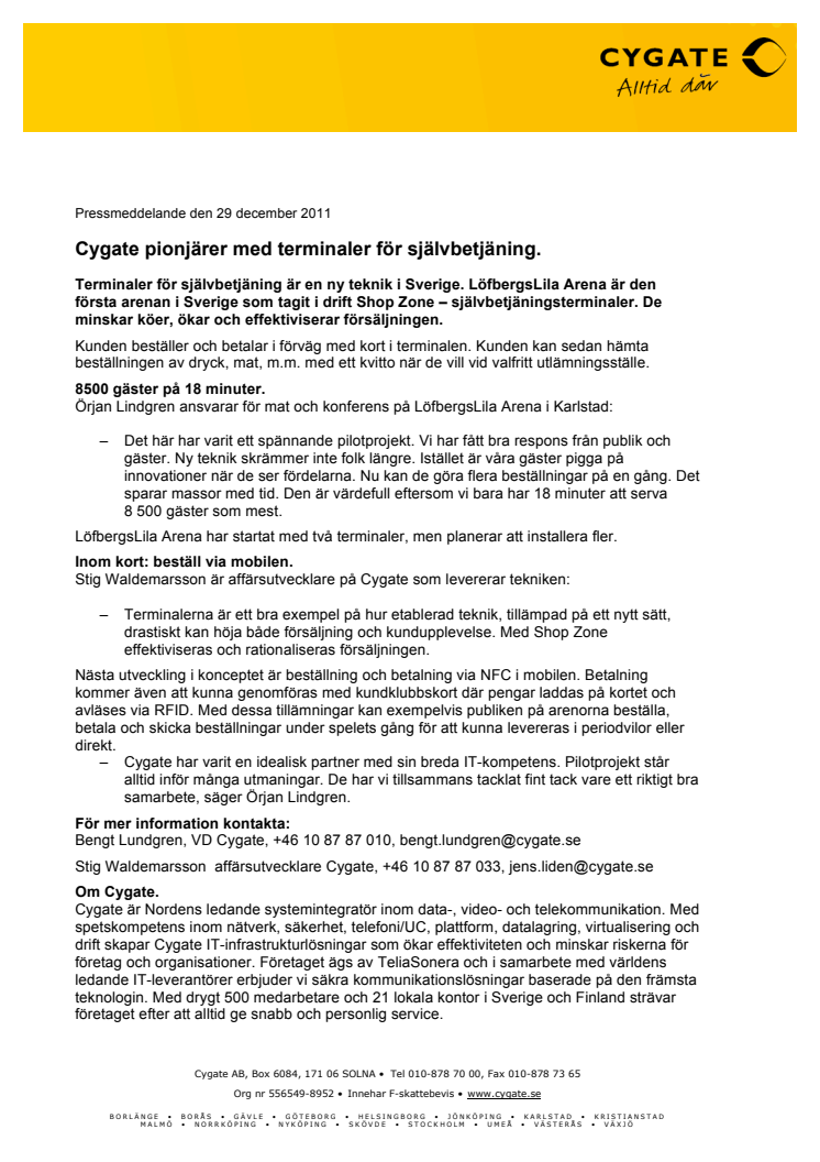 Terminaler för självbetjäning är en ny teknik i Sverige. LöfbergsLila Arena är den första arenan i Sverige som tagit i drift Shop Zone – självbetjäningsterminaler. De minskar köer, ökar och effektiviserar försäljningen.