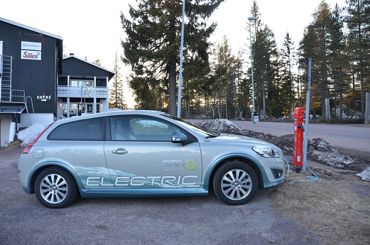 Laddstolpe vid Skistars huvudkontor i Lindvallen, Sälen