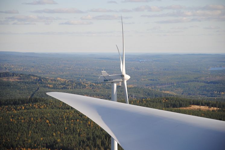 Vindkraftverk på Tavelberget i Linghed i Falu kommun. Foto: Dala Vind AB