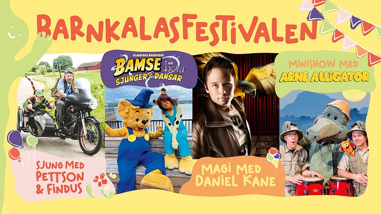 Sugs in i en förtrollande värld – ta oss i handen och följ med Pettson & Findus, dansa loss med Bamse & Lova, förbluffas av trollkarlen Daniel Kane och sjung med Arne Alligator. Barnkalasfestivalen kommer tillbaka till Dalhalla den 9 juli.