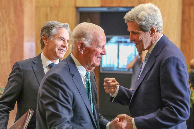 I bild: Antony Blinken, James Baker III och John Kerry.