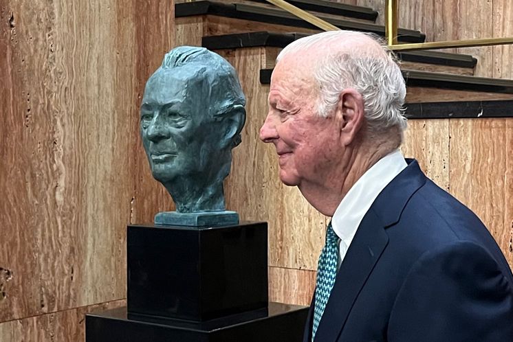 Bild från när James Baker III hedras i Washington, D.C. genom byst donerad av Christin och Dan Olofsson. 4 april 2022.