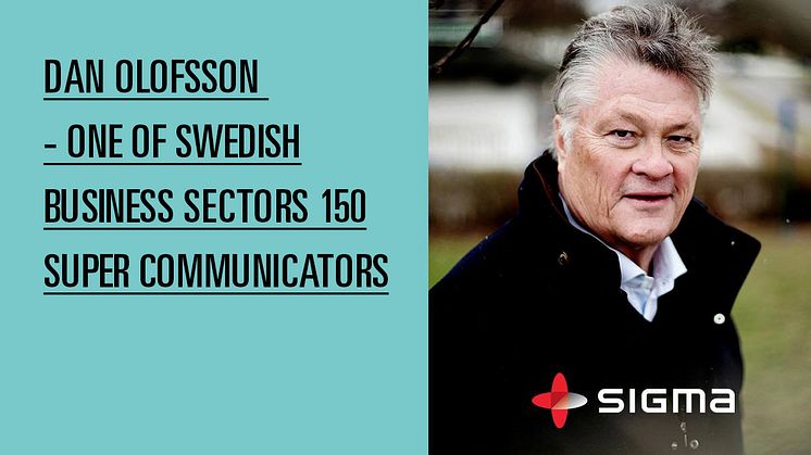 We would like to congratulate Sigma’s founder and owner Dan Olofsson who has been nominated as one of “Swedish business sectors 150 Super communicators”. Dan is acclaimed for his entrepreneurship and his social commitment to the community such as “Uppstart Malmö”, a foundation whose goals are to prevent alienation, promote integration and create more job opportunities. We at Sigma are really proud to have such a driven, wise and passionate owner.