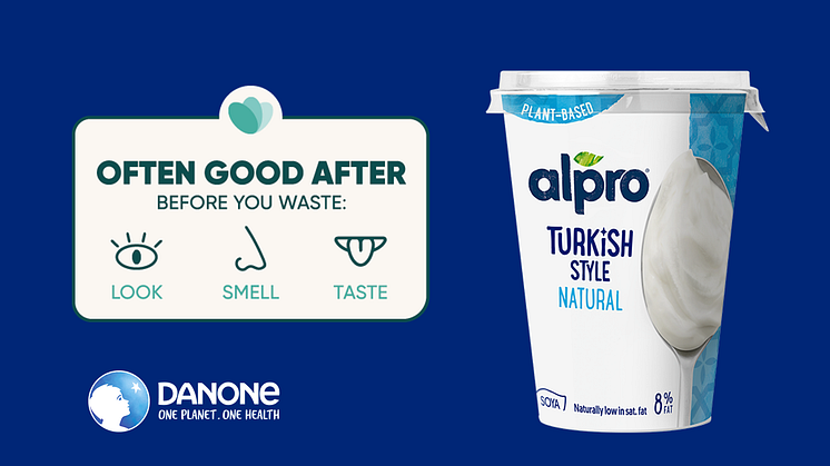 För att bidra till kampen mot matsvinn utökar Danone sortimentet av varumärken som har Too Good To Go-märkningen ”ofta bra efter” på förpackningen. Alpro blir det senaste tillskottet av varumärken med märkningen, som kommer att finnas på nylanserade Alpro Turkish Style. "Ofta bra efter"-märkningen uppmuntrar konsumenter att använda sina sinnen och inte bara utgå från datummärkningen.